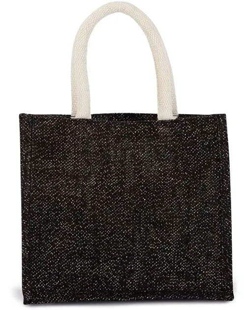 Sacoșă din pânză de iută cu mânere din bumbac.